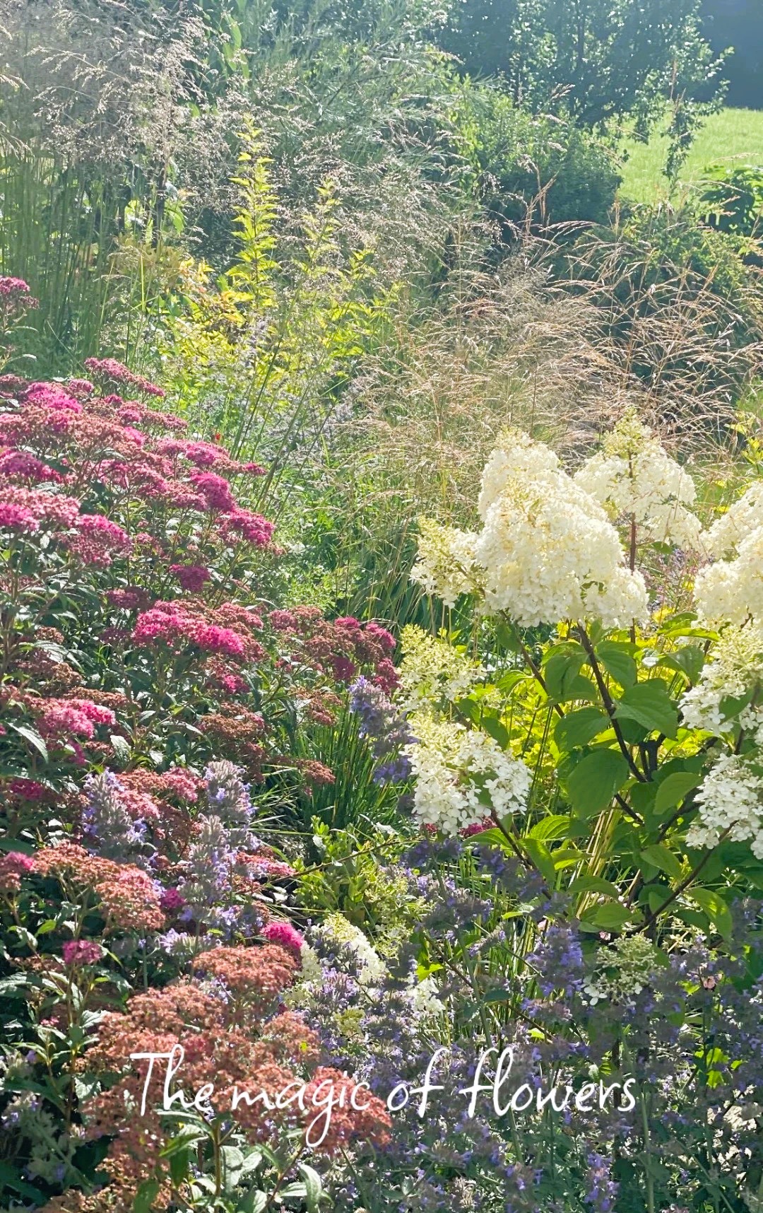 Kombinace trvalek, keřů a okrasných trav vytváří texturu, barvu a pohyb, který přitahuje pohled i hmyz.